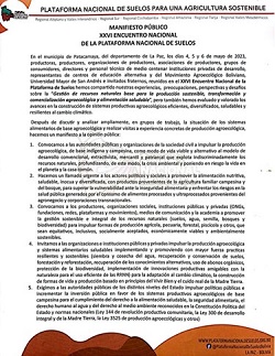 Manifiesto de la Plataforma Nacional de Suelos - Encuentro Nacional Patacamaya 2023