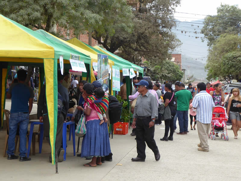 Feria en la plaza de Caranavi durante el XII Encuentro de la Plataforma de Suelos Regional Amazonia en 2019. (Plataforma Nacional de Suelos)