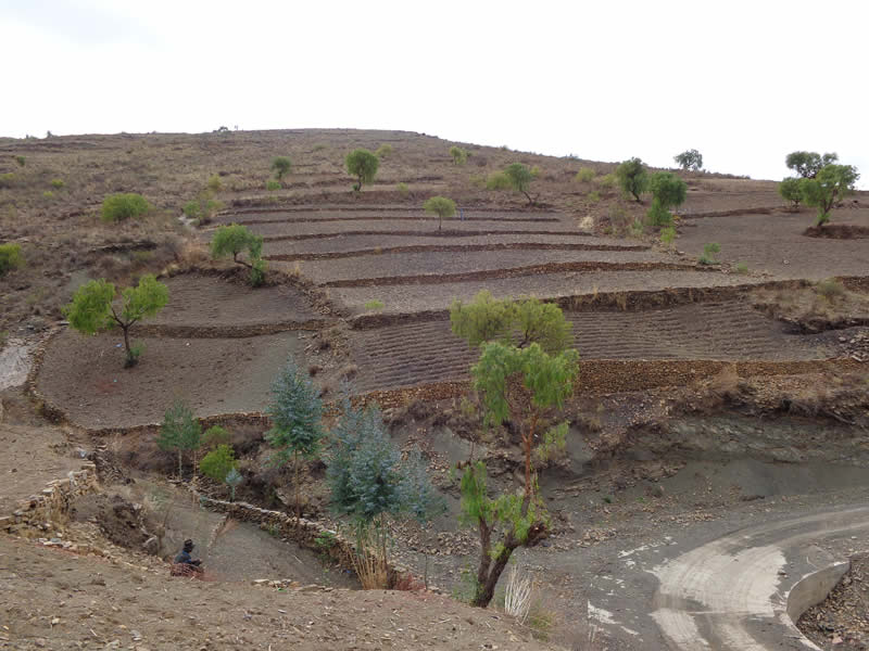Parcelas protegidas con terrazas como una medida de conservación de suelos. (PASCAR)