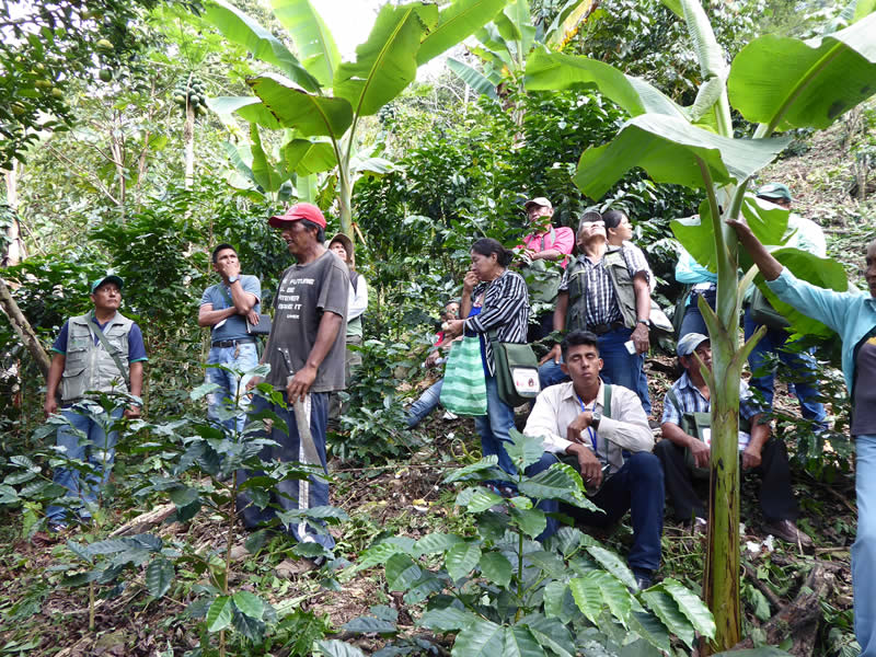 Visita a una parcela de café en el municipio de Caranavi. El productor comparte sus experiencias. (Plataforma Nacional de Suelos)