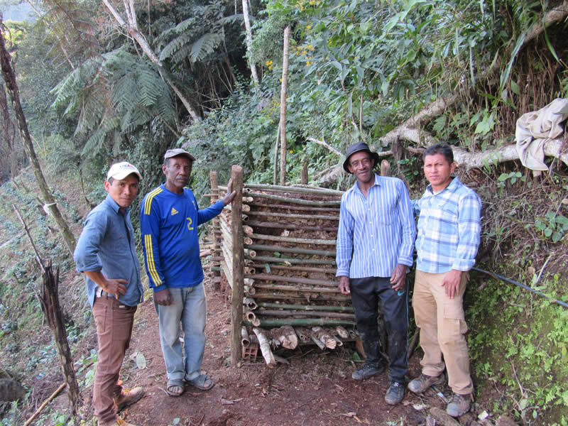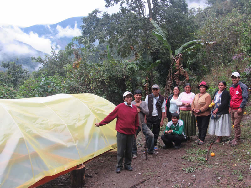 Construcción de secador de café tipo semi-túnel con la gente de la comunidad Padilla, Coroico. (Pastoral Social Cáritas Coroico)