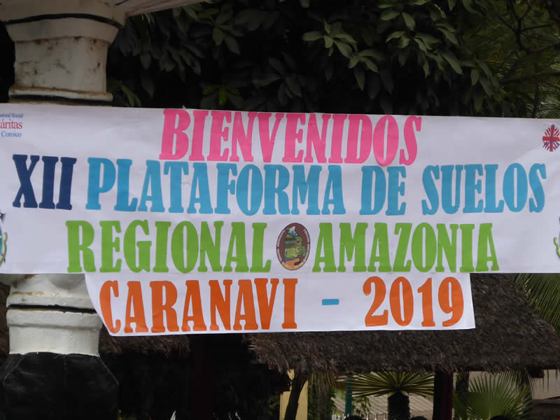Banner en la plaza de Caranavi durante el XII Encuentro de la Plataforma de Suelos Regional Amazonia en 2019. (Plataforma Nacional de Suelos)