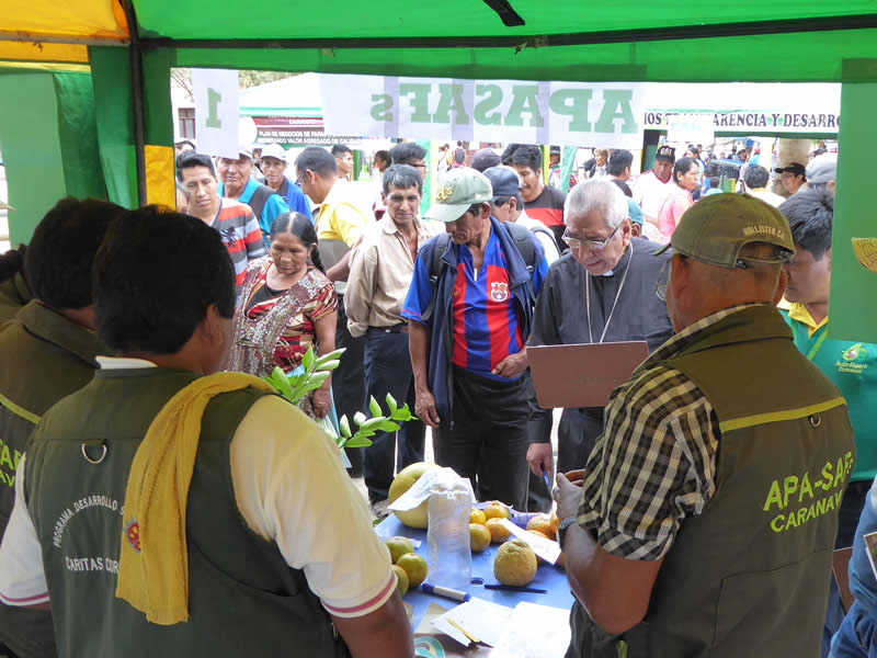 Uno de los stands durante la feria del XII Encuentro de la Plataforma de Suelos Regional Amazonia en 2019 con el monseñor Juan Vargas. (Plataforma Nacional de Suelos)