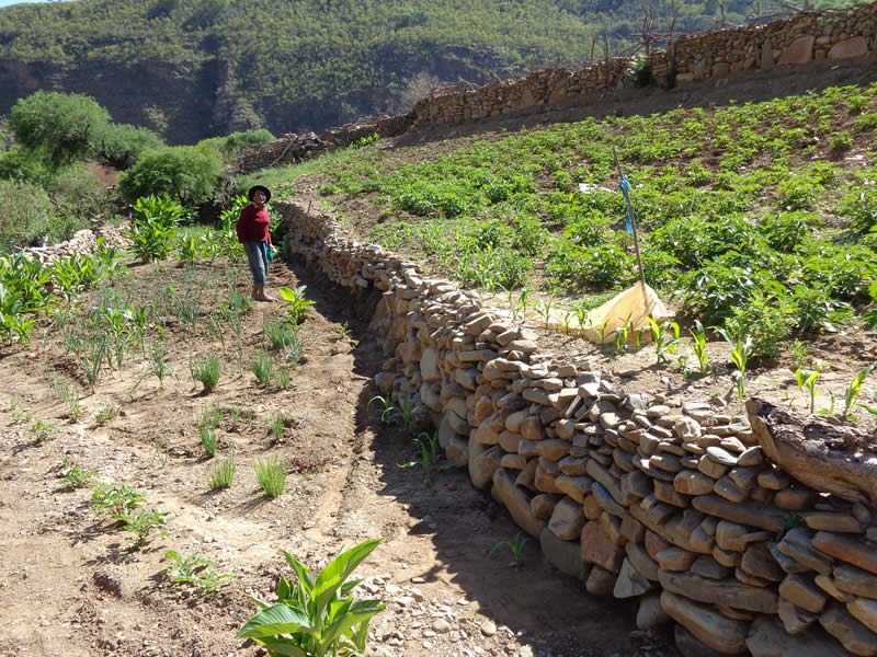 Parcelas protegidas con terrazas como una medida de conservación de suelos. (PASCAR)
